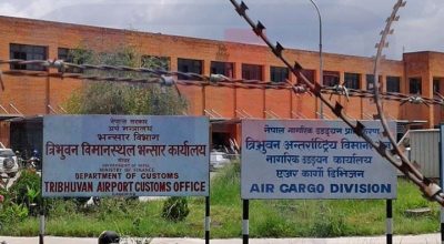 काठमाडौं । त्रिभुवन अन्तर्राष्ट्रिय विमानस्थलको भन्सारमा जाँचका लागि सशस्त्र प्रहरी बल परिचालन गरिएको छ ।