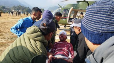 दार्चुला । दार्चुलामा जीप दुर्घटनामा घाइते भएका तीनजनालाई उपचारका लागि नेपाली सेनाको हेलिकप्टरमा कैलालीको धनगढी