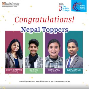 काठमाडौँ । द ब्रिटिस कलेजको भगिनी स्कुल द ब्रिटिस मोडल कलेजका चार जना ए लेभलमा
