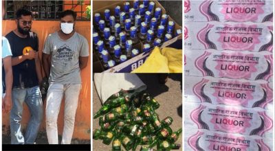 भैरहवा । नक्कली अन्तस्शुल्क स्टीकर प्रयोग गरी मदिराको अवैध कारोबार गर्ने दुई युवालाई रुपन्देही प्रहरीले