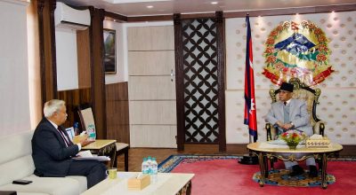 काठमाडौं । प्रधानमन्त्री पुष्पकमल दाहाल प्रचण्ड र नेपालका लागि भारतीय राजदूत नवीन श्रीवास्तवबीच भेटवार्ता भएको