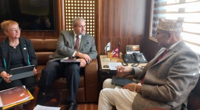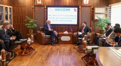 काठमाडौं । विश्व बैंकका वरिष्ठ प्रबन्ध निर्देशक एक्सेल भान ट्रोटसनबर्गले अर्थमन्त्री वर्षमान पुनसँग भेटवार्ता गरेका