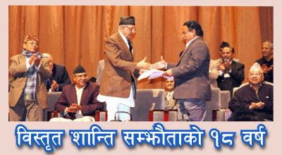 काठमाडौं । नेपालमा चलेको दशवर्षे सशस्त्र द्वन्द्वपछि विस्तृत शान्ति सम्झौता भएको भोलि १८ वर्ष पूरा