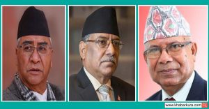 काठमाडौं । प्रधानमन्त्री शेरबहादुर देउवासहित सत्ता गठबन्धनका शीर्ष तीन नेताबीच प्रधानमन्त्रीको सरकारी निवास बालुवाटारमा भेटवार्ता
