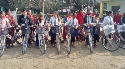भालुवाङ । दाङको राप्तीगाउँपालिका वडानम्बर ४ र ६ का विभिन्न विद्यालयमा अध्ययनरत छात्रालाई नयाँ साइकल