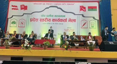 काठमाडौं । चुनावी प्रचार अभियानमा सक्रिय रहेको पाँच दलीय सत्ता गठबन्धनले आज काठमाडौंमा प्रदेशस्तरीय भेला